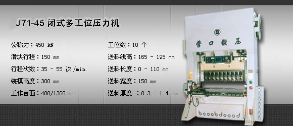 J71 - 45 閉式多工位壓力機 技 術 參 數